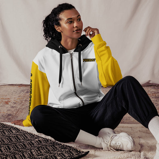 Sweat à capuche zippé unisexe Prestige™ Blanc & Jaune Lifestyle & Luxury