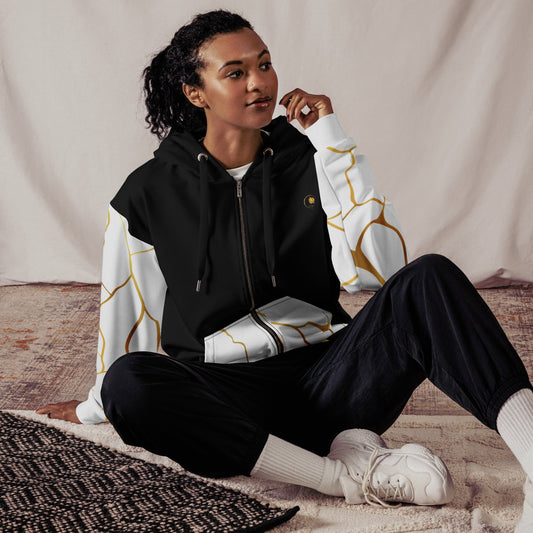 Sweat à capuche zippé unisexe Prestige™ Noir Blanc et Or Filament
